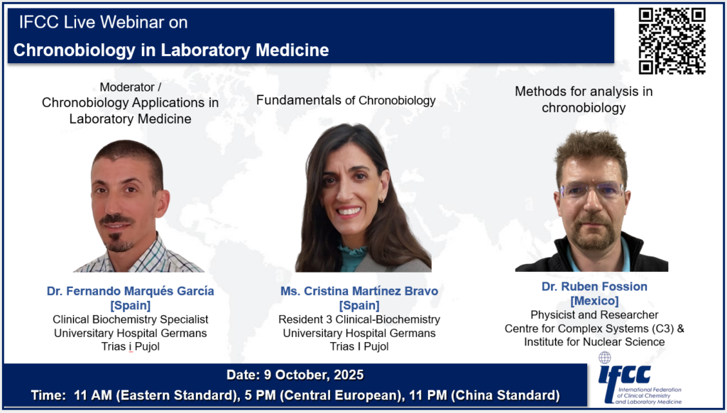 La cronobiología clásica es la ciencia que estudia los ritmos biológicos basándose en métodos directos y series temporales empíricas de sujetos individuales. En medicina de laboratorio, el factor tiempo suele subestimarse, y actualmente no existen métodos para estudiar los ritmos biológicos en bases de datos poblacionales de datos puntuales del mundo real (DMR). La cronobiología poblacional, basada en DMR, se presenta como una alternativa a la cronobiología individual clásica y supera las limitaciones de estos métodos directos. El uso de DMR proporciona nuevos conocimientos sobre la relación entre la cronobiología y la práctica clínica de laboratorio, por ejemplo, la corrección de los intervalos de referencia y la posibilidad de una medicina más personalizada.