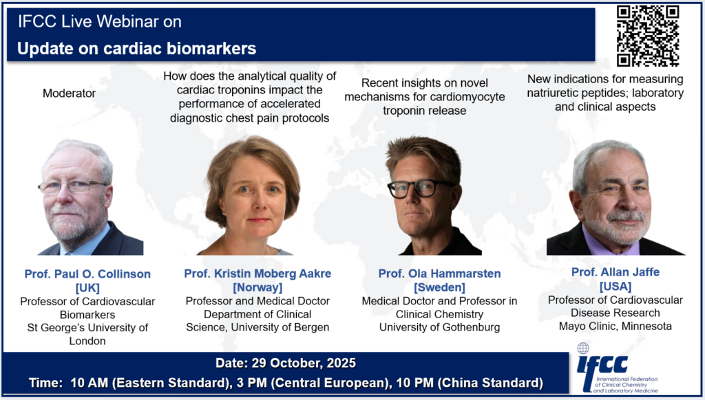 Este seminario web abordará los conocimientos más recientes sobre biomarcadores cardíacos. Comenzaremos con una descripción general de cómo la variación analítica de los ensayos de troponina influye en el rendimiento de los protocolos de diagnóstico acelerado de 0/1 hora o 0/2 hora que incluyen mediciones de troponina. La siguiente charla será una actualización sobre los mecanismos de liberación de troponina en los cardiomiocitos y la última, describirá las nuevas utilidades clínicas de los péptidos natriuréticos, incluyendo las ventajas y desventajas de este nuevo enfoque.