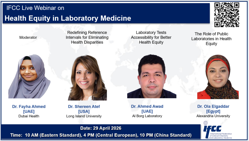 Este seminario web contará con la participación de tres expertos que abordarán el papel fundamental de la medicina de laboratorio en el avance de la equidad en salud y la reducción de las disparidades en el acceso a la atención médica y sus resultados. La sesión ofrecerá información sobre cómo los profesionales de laboratorio pueden contribuir a un sistema de salud más inclusivo y eficaz mediante la identificación de barreras para una atención equitativa y la implementación de estrategias para reducir su impacto. Se prestará especial atención al papel de los intervalos de referencia y cómo los puntos de corte basados en el sexo y la raza pueden influir en la interpretación clínica y los resultados de los pacientes. El seminario web también explorará cómo el acceso limitado a pruebas de laboratorio de alta calidad y oportunas puede deberse a barreras geográficas, financieras y sociales, y cómo enfoques innovadores como las pruebas directas al consumidor (DTC) y las pruebas en el punto de atención (POCT) pueden ayudar a mejorar la accesibilidad. Además, la sesión destacará el papel esencial de los laboratorios públicos en la promoción de la equidad en salud a través de servicios de diagnóstico accesibles, el apoyo a poblaciones desatendidas, la generación de datos de salud pública y el desarrollo de la fuerza laboral. Los asistentes obtendrán información práctica sobre cómo la medicina de laboratorio puede ayudar a identificar y abordar las disparidades en salud, al tiempo que apoya una prestación de atención médica más equitativa para diversas poblaciones.